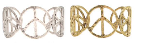 with open back to slip on wrist. Peace signs 1-3/8" (3.5 cm) diameter