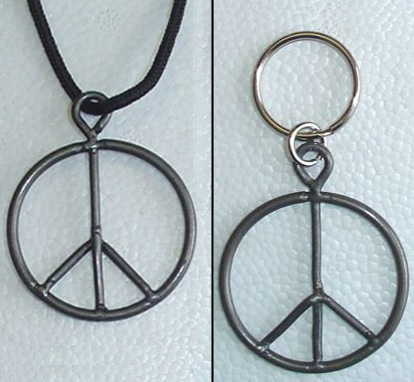 Hand-crafted by artisans from Bethel, NY, the peace symbol pendants for these key chains and necklaces