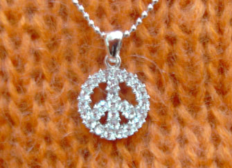 Peace Necklace Rhinestone pendant on silver ball-bearing chain