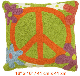 Besides having a great green background, this peace rug and peace pillow are also enviornmentally "green". While beautifully soft to the touch,