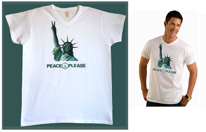 Statue of Liberty and Peace Shirt Uni-sex, v-neck, 100% cotton