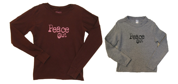 Peace Out Long Sleeved Tees from Urban Kitten click for Short Sleeved Peace Out